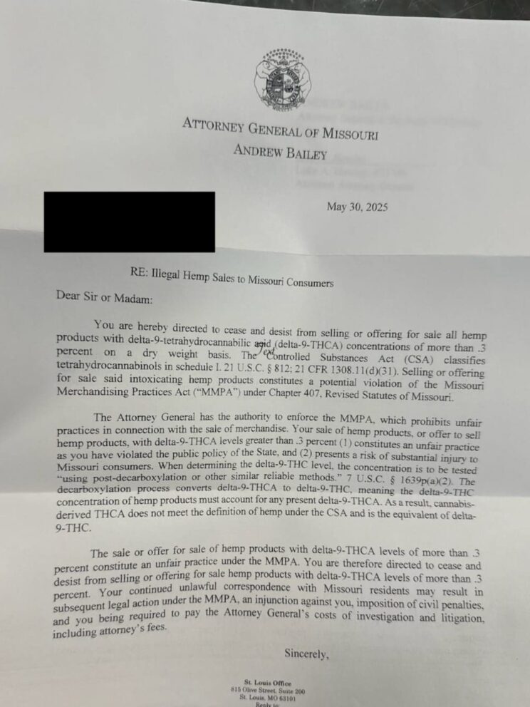 MO AG letter re THCA Hemp | Kight on Cannabis Your Cannabis Lawyer